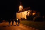 Obogateni z izku±njo prepoznavanja nočne krajine, smo se vrnili k Bodonski cerkvi, kjer so ob 9. udarcu 23.-te ure na cerkveni zvon evangeličanske cerkve, ugasnile luči usmerjene na cerkev in ugasnila je tudi javna razsvetljava. Zajela nas je prijetna tema in nad nami je zasijalo jasno zvezdno nebo. Zaploskali smo in zazrti v nebo videli čedalje več zvezd.