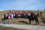 Letos se je odvil ľe 10. Valentinov pohod v organizaciji Turističnega druątva Rogaąovci in Območne obrtne zbornice Murska Sobota. Ob prijavi je vsak udeleľenec pohoda prejel spominsko medeno srce in glinen obesek. Pohodniki smo se odpravili na pot izpred Gostilne Valec v Sotini. Najprej smo naredili skupinsko fotografijo, nakar se nas je okrog 120 udeleľencev v veselem vzduąju odpravilo na pot. Pot je bila zelo razgibana, saj smo prehodili zasneľeno kot tudi rahlo blatno pot in uľivali v hoji po gozdu, kot tudi v pogledu na ąe rahlo zimsko kulturno krajino. Kratek postanek smo naredili ob naravni vrednoti Goričkega, pri izviru slatine, ki teče v potok. Za nadaljnji vzpon na najviąji breg Goričkega, Sotinski breg ali Kugel, smo se predhodno okrepčali z domačim pecivom in pijačo na eni od kmetij ob poti. Na samem vrhu, 418 m, nas je pozdravil veter, ampak ob zelo jasnem vremenu smo bili deleľni lepega razgleda na jug, na celo dolino Ledave in Ledavskega jezera, kot tudi na severno avstrijsko stran do gradu Tabor na Gradiąčanskem in Kapfenstein na Ctajerskem. Tisti, ki so se pohoda udeleľili prvič, so bili deleľni krsta. Od vrha smo se spustili po Kuglu navzdol po turistični geoloąki poti do mejnega prehoda Sotina-Kalch in občudovali nenavaden in ľe skoraj na alpsko pokrajino spominjajoč del Kugla ter v dolini vijugajočo se Ledavo. Pri kamnolomu je bil ąe zadnji krająi postanek, nakar smo pot po cesti mimo ľage Dajč nadaljevali do gasilskega doma v Sotini, kjer so nas organizatorji za zaključek pogostili z golaľem ali domačo klobaso.
