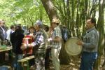 Ob mejnih kamnih smo stopali globje v gozd do mesta, kjer je nekoč stala karavla v Budincih. Prijetno igranje in petje Budinčarjev nas je privabilo k okrepčilu, ki je vabilo z obloµenih miz.