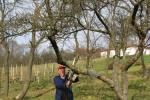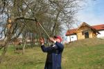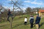 Po kratkem uvodnem pozdravu in nagovoru evangeličanskega duhovnika Simona Severja nam je Vlado Smodi±, inµenir agronomije in sadjar ter predsednik Sadjarskega dru±tva Pomurja, predstavil praktični prikaz rezi visokodebelnega sadnega drevja. Prikaz je del prakse, ki jo je omenjeno dru±tvo skupaj z Goričkim drüj±tvom za lep±e vütro izvajalo µe lansko leto v sklopu projekta Ohranimo ogroµenim pticam njihov µivljenjski prostor. Po končani rezi mladega in starega visokodebelnega sadnega drevja je Gregor Domanjko, zaposlen na JZ KP Goričko, na drevesa 4 m visoko, namestil 4 gnezdilnice. Te so namenjene pticam duplarjem, kot so velika sinica, brglez, smrdokavra ali veliki skovik. Prisotne smo seznanili s pomenom gnezdilnic za ptice, z njihovo izdelavo in s posebnostmi na katere morajo paziti, ko jih name±čajo.