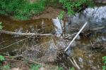 Predvsem pa smo v pogovoru po akciji ugotovili, da bo zelo teµko zadostiti pogojem Evropske vodne smernice in Zakona o vodah, ki zaradi vplivov onesnaµevanja iz razpr±enih virov, prepovedujeta na priobalnih zemlji±čih vodotokov 2. reda intenzivno rabo kmetijskih povr±in v ±irini 5 metrov od roba brega vodotoka na vsako stran. Ti so nedvomno prisotni, saj ima sedaj Peskovski potok veliko oµje priobalno zemlji±če, poleg razpr±enih virov pa vsebuje tudi točkovne vire onesnaµenja, kamor bi lahko uvrstili vsa divja odlagali±ča odpadkov, predvsem iz vrst nevarnih odpadkov.