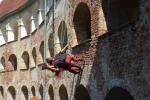 Na več kot 800 let starem gradu so madžarski umetniki uprizorili ples po zidu gradu v Deželi sedmerih travnikov, kot je ime festivala, ki se dogaja v Öriszentpétru že od leta 2002.