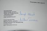 Pismo sta podpisala direktor Narodnega parka Őrség, dr.Ferenc Markus in predsednik Druątva za razvoj Naravnega parka Raab in ľupan občine Neuhaus ob Klavľnem potoku, Helmut Sampt. Direktor Krajinskega parka Goričko, Janko Halb podpisu ni prisostvoval, pač pa ga je podpisal naknadno.