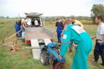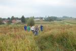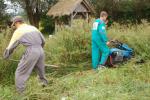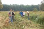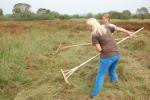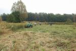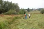 Dijaki so pod budnim očesom svojih mentorjev in učiteljev na travniku preskusili več orodij od ročne kose, kose na nitko in strižne samohodne kose. Dekleti sta pomagali z grabljami. Trava je bila visoka in staremu traktorju (iz vrst oldtiemerjev) s strižno koso je bilo treba utreti pot z ročno košnjo. Ob koncu smo s skupnimi močmi odstranili tudi grmovje in odpadke ter vejevje zložili na kup. Pri tem so se nam pridružili tudi delavci iz društva Mozaik, ki se usposabljajo za nego krajine v okviru projekta Poti do boljše socialne vključenosti. Poleg cilja – odstraniti biomaso iz površine mokrišča, je bil namen akcije vzbuditi zanimanje in razložiti smisel ter pravilno izvedbo košnje mokrotnega travnika dijakom in njihovim mentorjem. Za zaščito živali in pilotski monitoring nad dogajanjem prihodnje leto smo pas travnika na severnem robu v širini 3 metrov pustili nepokošenega. Nekaj dni po košnji smo posušeno travo zložili na rob parcele, kjer jo bomo prepustili razkroju, saj zanjo nismo našli uporabnika, zažgati pa je nismo hoteli.