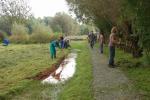 Po zasluženi malici so se dijaki s košnjo lotili še drugega mokrotnega travnika na poplavnem območju zadrževalnika Ledavsko jezero. Tudi ti travniki so naravna vrednota državnega pomena, vpisani pod evid.št.: 7304 – Pertoča – mokrotni travniki. Površina je velika 63 ha in sega tudi v k.o. Ropoča. Mokrotni travniki imajo raznoliko podobo, pri čemer rastline prisotnost raznovrstnih rastlinskih združb pričajo o vlažnosti tal. Tam kjer je najbolj vlažno in je skoraj pravo močvirje so se pretežno razrasle perunike, ki jih ni potrebno kositi. Košnje smo se tako lotili med cesto in nasipom, ki varuje naselje pred poplavami. Posušeno travo je prevzel bližnji kmet. Ob tem smo opravili tudi redčenje drevesne in grmovne zrasti ob makadamski cesti, ki je bila nevarna za promet. V deblu vrbe smo opazili tudi luknjo duplarja in tisto deblo pustili rasti še naprej.