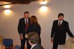 01.12.2005 Minister g. Janez Podobnik, je v sredo popoldne ob 15.00 uri obiskal grad Grad in obisk namenil srečanju z župani parkovnih občin, z novinarji in zaposlenimi v Javnem zavodu Krajinski park Goričko. V svojem govoru se je javno zahvalil g. Kočarju, nekdanjemu županu občine Kuzma in sedanjemu županu občine Grad, Danielu Kalamarju, ki je opravljal funkcijo v.d. direktorja do 30. avgusta 2005. Srečno popotnico v vodenju KP Goričko je izrazil direktorju Janku Halbu, ki je začel z delom v parku 1. septembra 2005. Zahvalil se je tudi podpori vseh 11 županov pri ustanavljanju KP Goričko. Gospod minister je v svojem govoru navedel vse aktivnosti in pridobljene projekte, ki trenutno potekajo na Goričkem in ki jih izvaja JZ KP Goričko, ali v njih sodeluje kot partner. Z veseljem smo sprejeli tudi novico, da so bile z njegove strani podpisane tudi začasne upravljavske smernice, ki so pogoj za delovanje parka do sprejetja Upravljavskega načrta za obdobje 5 let. Za deloavnje parka je vzpodbudna zagotovljena višina sredstev v proračunu za leto 2006. Vzdušje ob obisku si lahko ogledate na priloženih fotografijah, govor g. ministra pa lahko preberete v priponki.