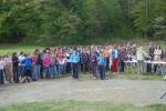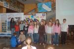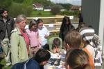 | razstava učencev na ograji ob mlaki | risbe iz ľivljenja ob vodi |