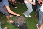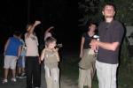Po predavanju je sledil večerni sprehod z opazovanjem in poslušanjem netopirjev s pomočjo ultrazvočnih detektorjev. To so posebne naprave, ki pretvorijo ultrazvočne klice netopirjev v nam slišne klice. Netopirji se namreč v temi orientirajo s pomočjo odmevov ultrazvočnih klicev, ki so našim uąesom neslišni, saj naša ušesa slišijo samo frekvence do 20kHz, netopirski klici pa so mnogo višji med 20-200 kHz. Na podlagi frekvence in ritma zvoka ter načina leta smo določili belorobega in poznega netopirja, ki sta letala ob uličnih lučeh ter navadnega mračnika, ki nas je preletel nekje visoko nad hišami. Ob koncu uspešno izvedenega ter številčno zelo obiskanega dogodka smo si najbolj vneti udeleženci razdelili vreče z nabranim gvanom.