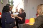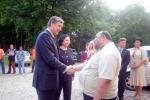 Marta je izročila predsedniku gorički kruh | ob izhodu se je rokoval z Emo Grah | in romskim svetnikom iz Cankove, A.Horvatom |