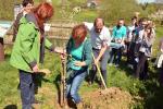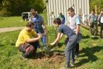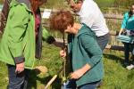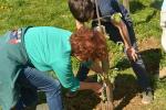 Posadili smo jablano stare sorte ter drevo skoriš, ki je bilo včasih na Goričkem kar pogosto, danes pa ga skoraj ni več. Prvo lopato zemlje sta vrgla ga. županja in ravnatelj naše šole.