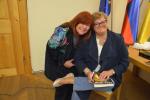 Desa Muck je pripoved pohvalila in prejela izvod knjižice v dar. Sledilo je podpisovanje njenih knjig in fotografiranje s pisateljico, ki jo učenci dobro poznajo.