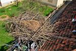 Letošnja zimsko-spomladanska akcija postavljanje podstavkov za štorkljina gnezda v Krajinskem parku Goričko je uspešno zaključena. Nameščanje zadnjega, letos tretjega, podstavka v Prosenjakovcih je bilo izredno zanimivo in poučno, saj nas je štorkljin samec nenehno motril z budnim očesom. Čeprav je bilo staro gnezdo čez zimo popolnoma uničeno, nas je zjutraj na starem podstavku pričakalo skoraj dokončano gnezdo. Nekaj minut po tem ko smo začeli z deli, pa nas je vse presenetil še štorkljin samec, ki je z vejami v kljunu zaokroľil nad gnezdom, nato pa se preusmeril na bliľnji električni drog, kjer je si je začel na novo spletati domovanje. Vsake toliko časa, je priletel nad nas, nas ošvrknil s pogledom, nato pa nadaljeval z začetimi deli. Še večje presenečenje pa je pripravil, ko smo zaključili z deli, saj je le kakih pet minut po tistem, ko se je dvigalo zadnjič spustilo, priletel na staro gnezdo na novem podstavku in neumorno začel urejati gnezdo po lastnih načelih. Čeprav je na novem podstavku samec trenutno še sam, vsak čas pričakujemo, da se mu bo pridruľila tudi samica. Hkrati pa upamo, da se bo nadaljevala ľe dve desetletji stara tradicija, ko iz Prosenjakovskega gnezda vsako leto poleti več zdravih mladičev belih štorkelj.